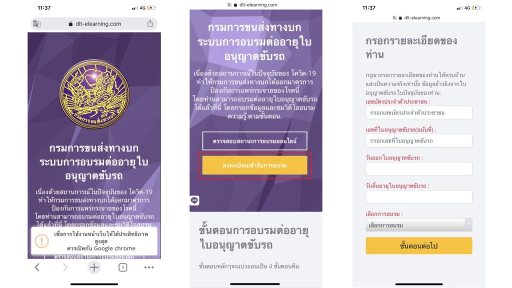 ต อใบข บข ออนไลน ลงทะเบ ยนอบรม Dlt Elearning เสร จส นไม ก ข นตอน